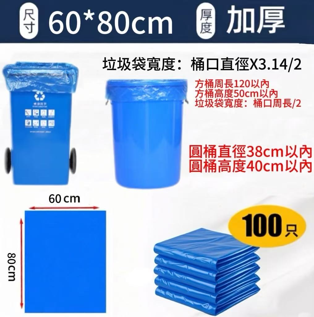商用.機構用垃圾袋藍色(60*80CM/100只)