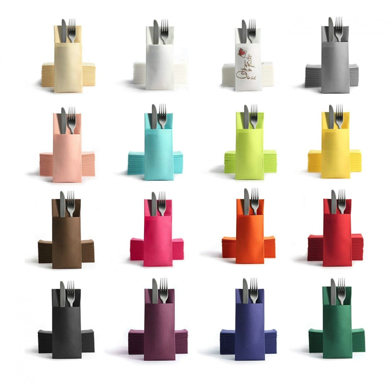 彩色無塵紙餐巾,口袋式折法,可放各式餐具,攤開可作餐巾用途,尺寸:攤開40*40cm,折後:10*20cm
