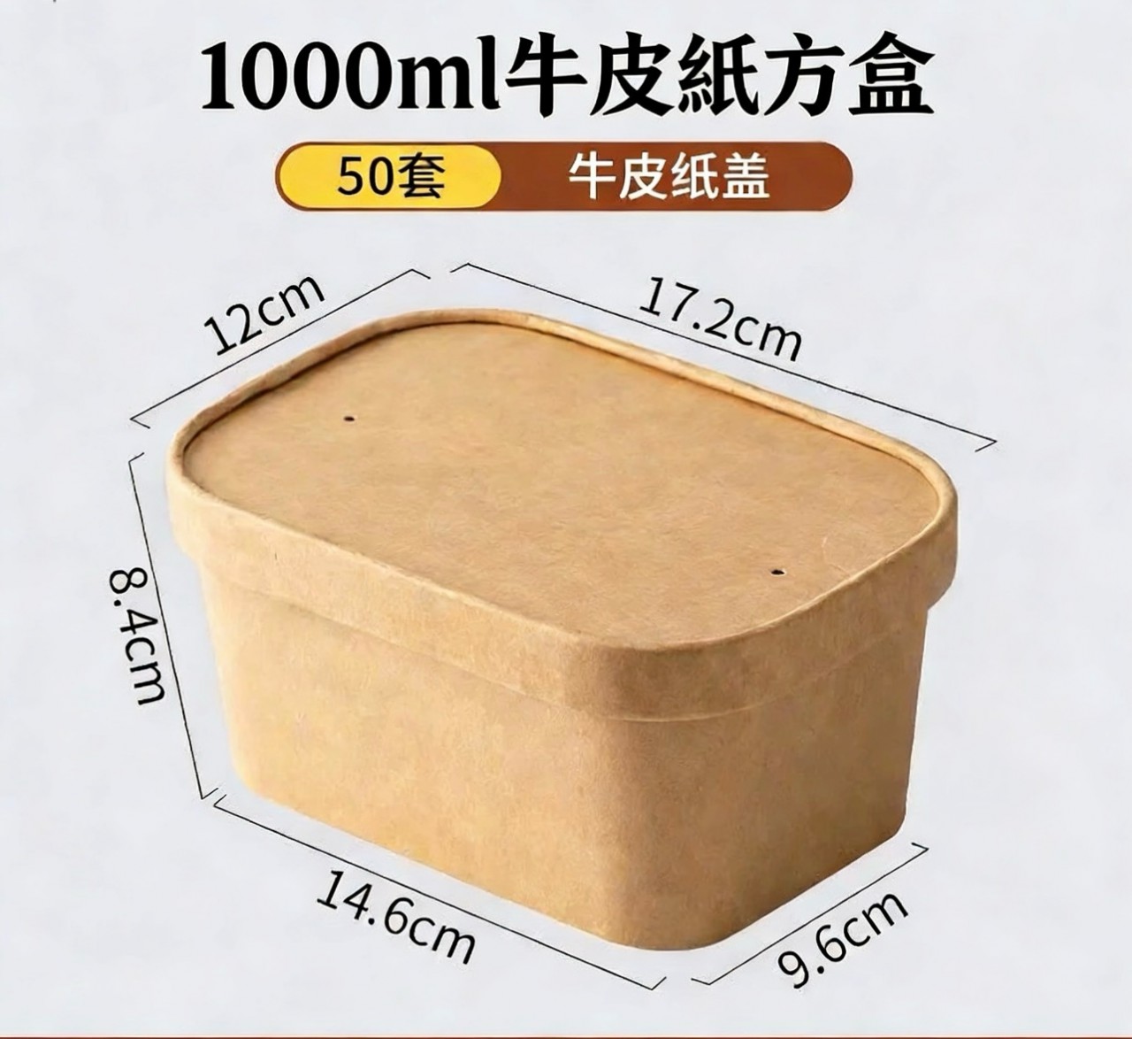 牛皮紙長方形飯盒 1000ml